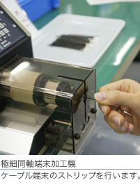 ここでは、製品の在庫管理と最新設備によるケーブル加工を行っています。