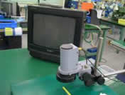 従来の顕微鏡による拡大検視作業と違い、テレビ画面での検視なので目の疲労を軽減でき、複数の作業者による検視が出来ます。